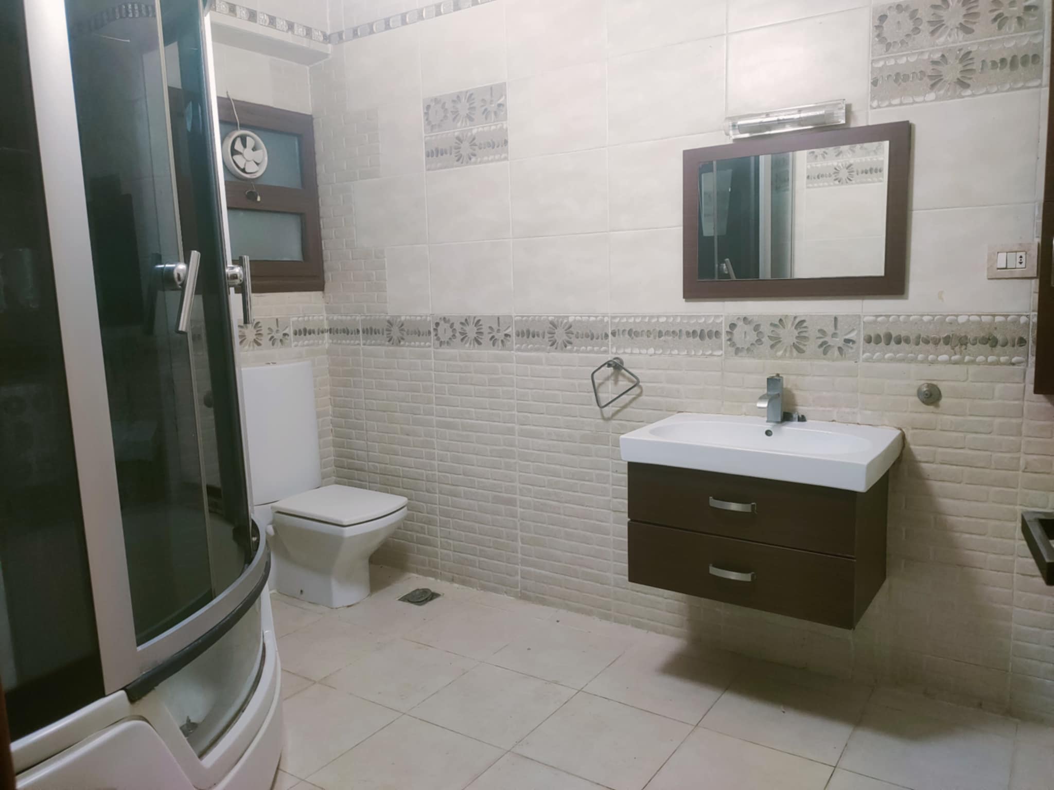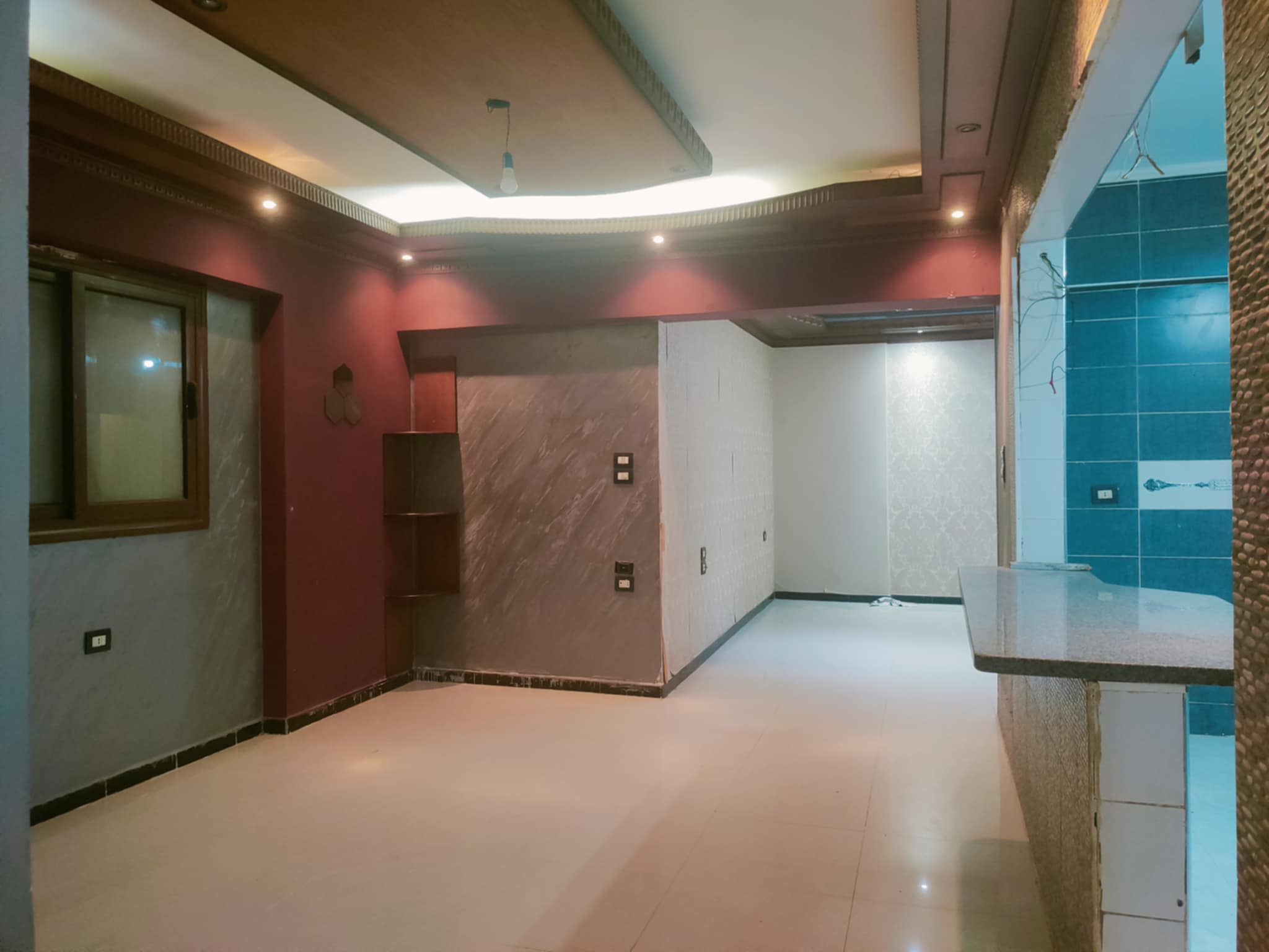 الشقة تتكون من ريسيبشن يسع 3 قطع + 3 غرف + 2 حمام + مطبخ امريكي مفتوح ع الريسيبشن
