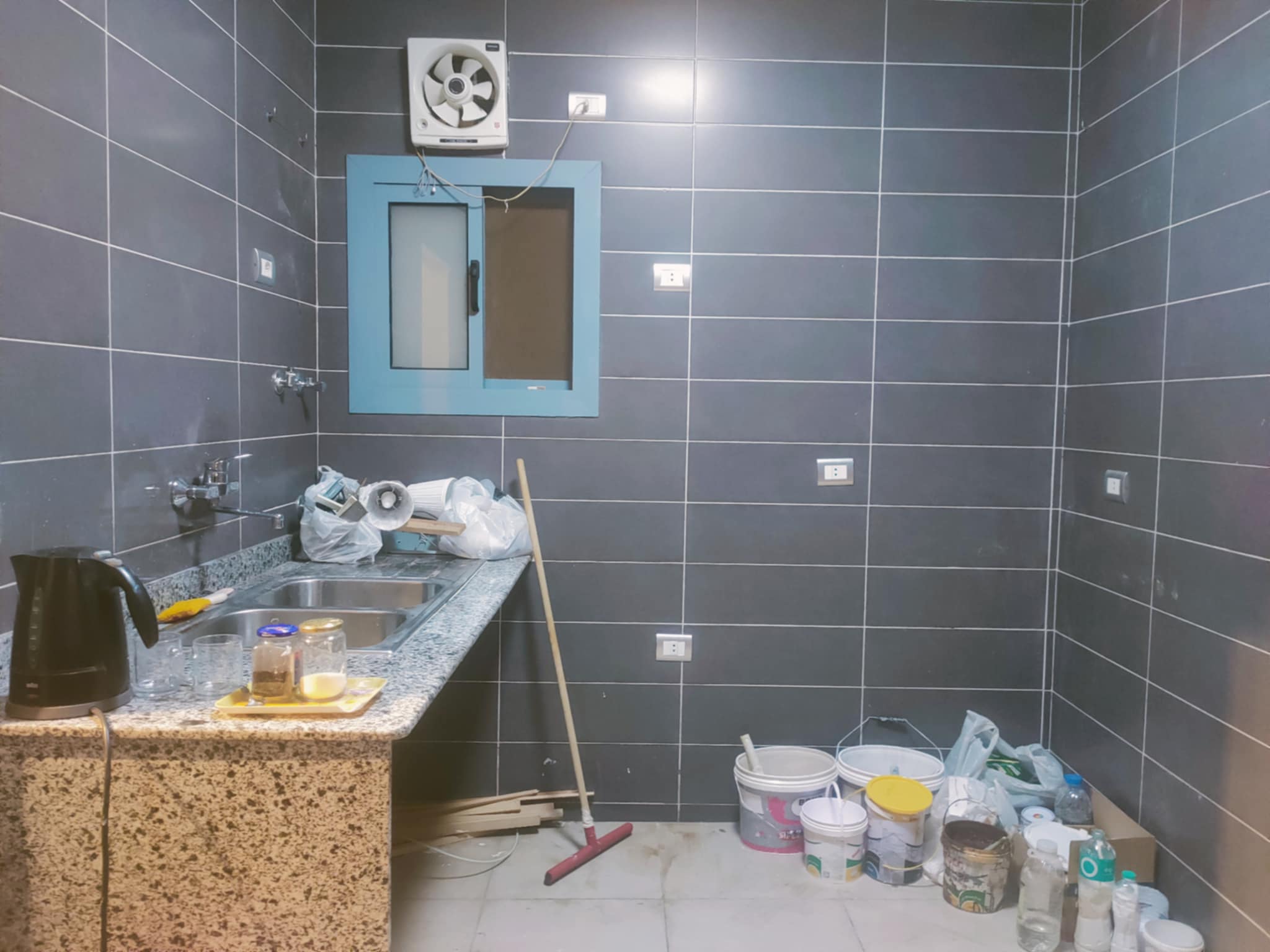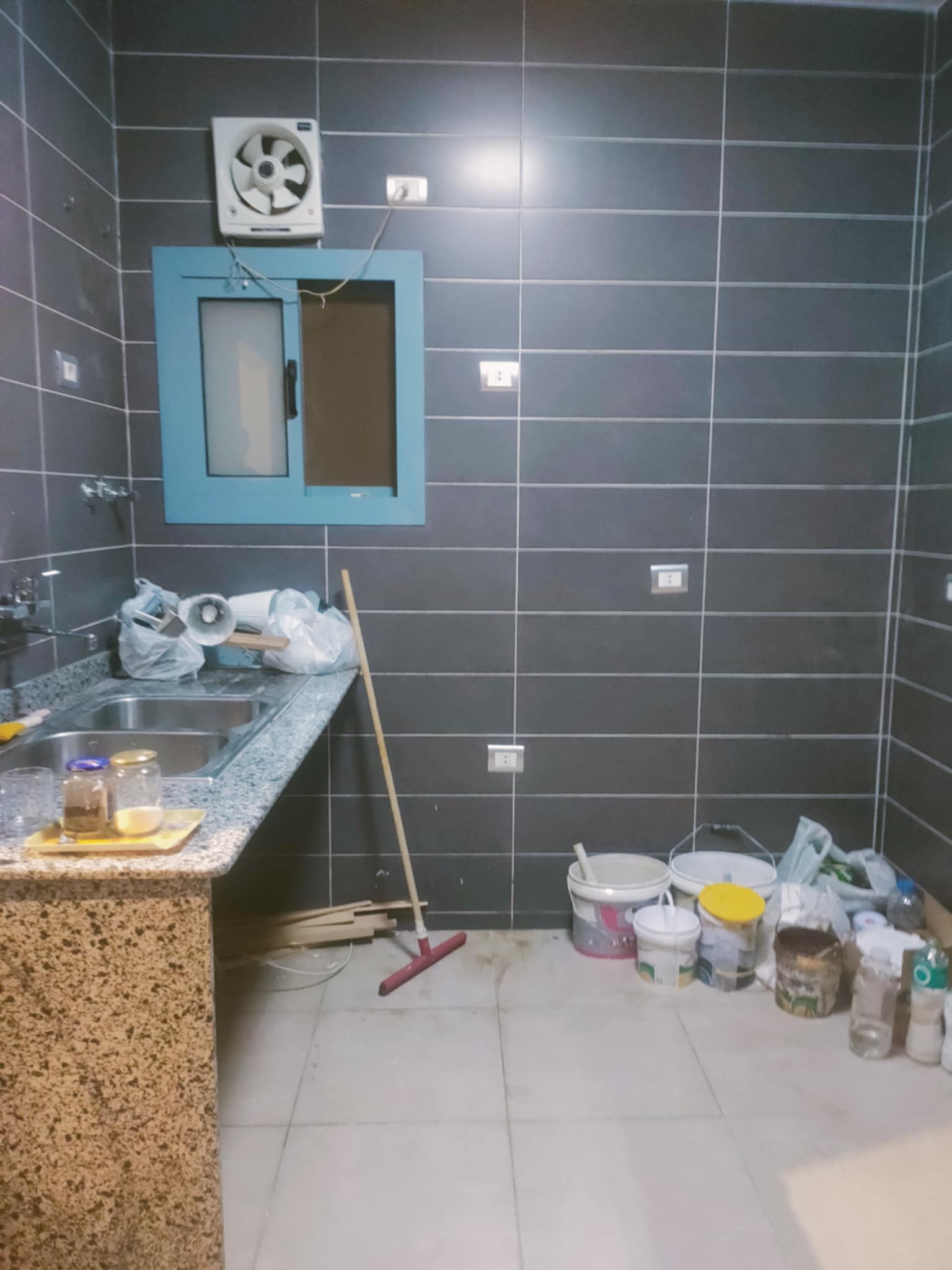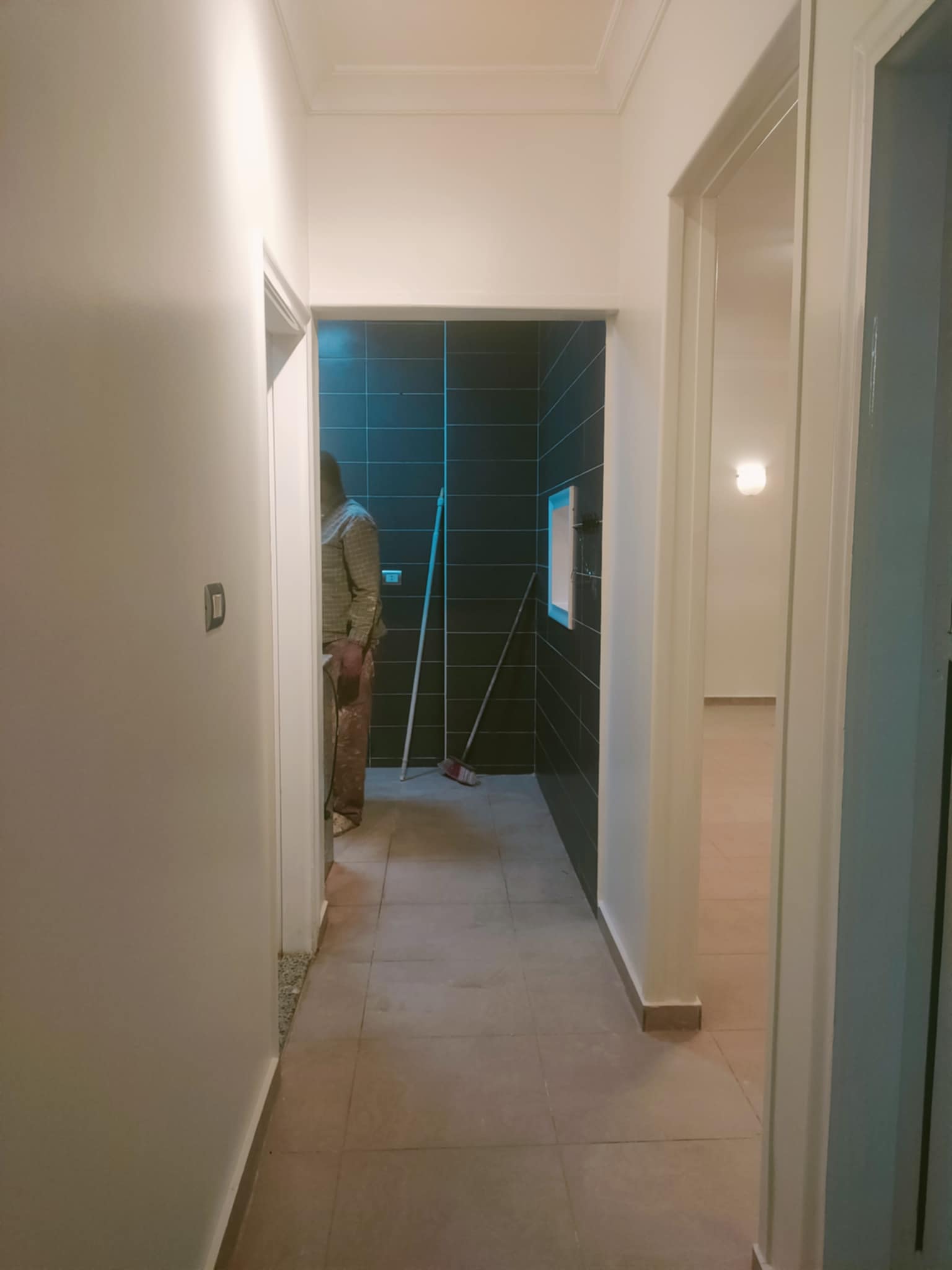 الشقة بتتكون من ريسيبشن قطعتين + غرفتين كبار + حمام + مطبخ
